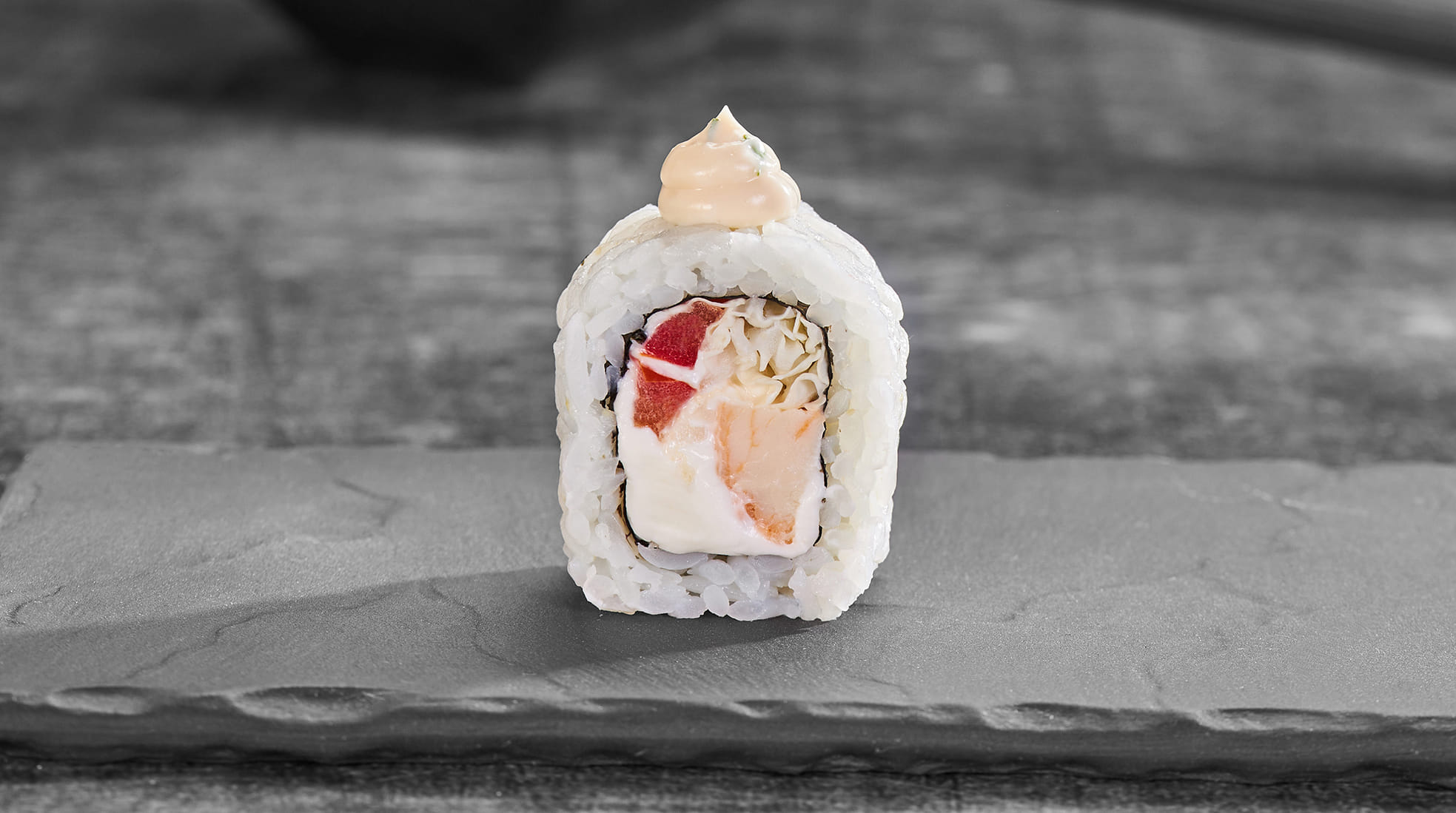 Состав: Курица, соус цезарь, сыр сливочный "Cremette", помидор, капуста пекинская, нори, рис