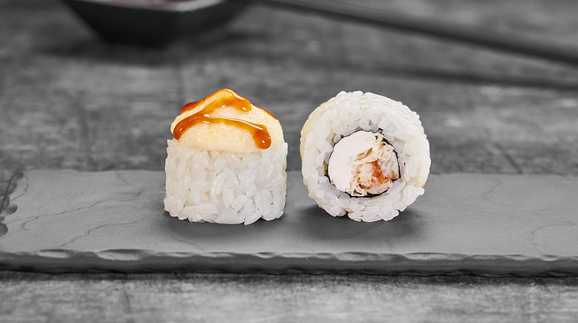 Состав: Угорь, сыр сливочный "Cremette", капуста пекинская, соус Унаги, замес Монако, кунжут, рис, нори